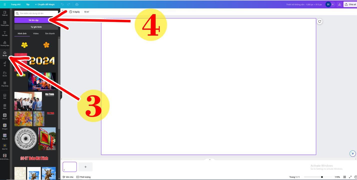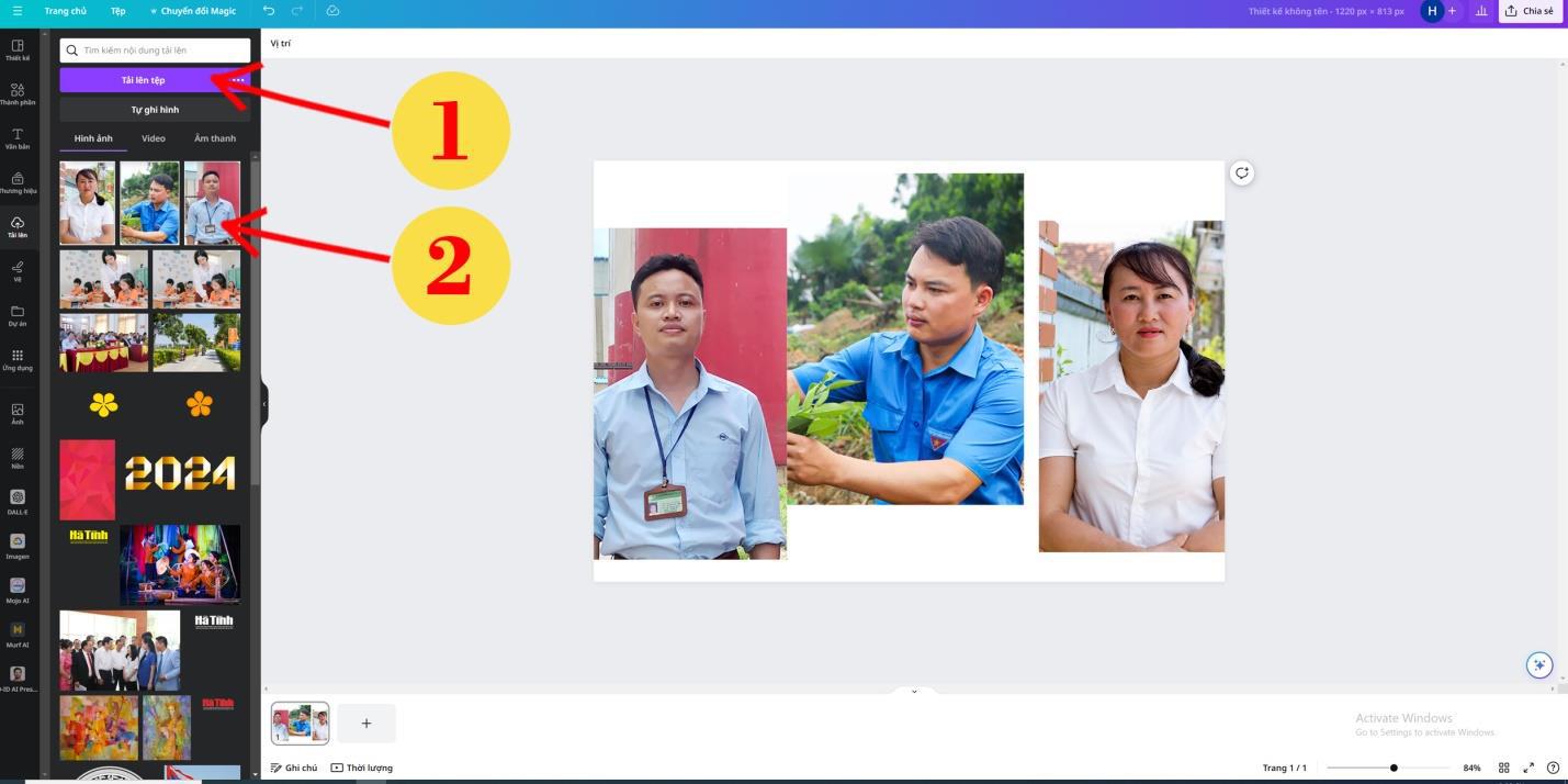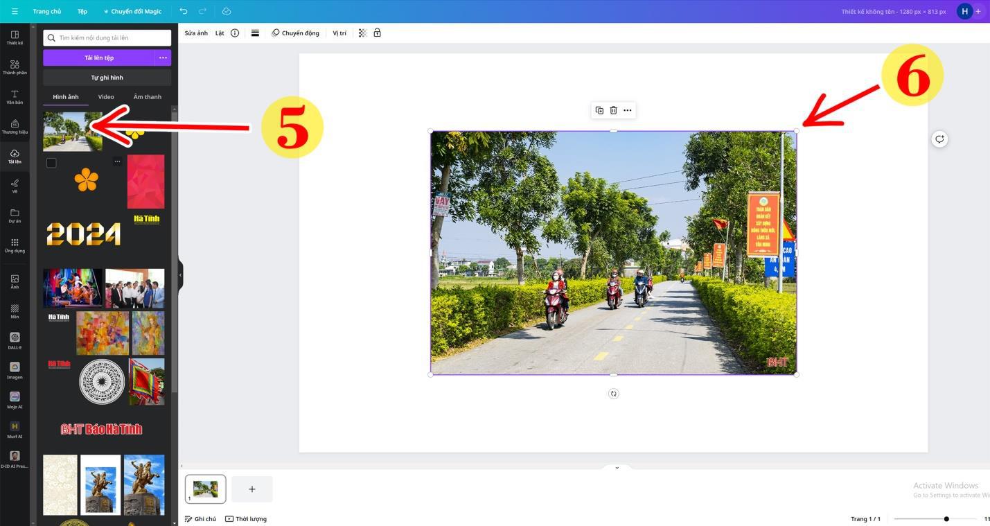 - Bước 5: Click chuột vào ảnh đã được tải lên hoặc giữ chuột để kéo ảnh vào khung.