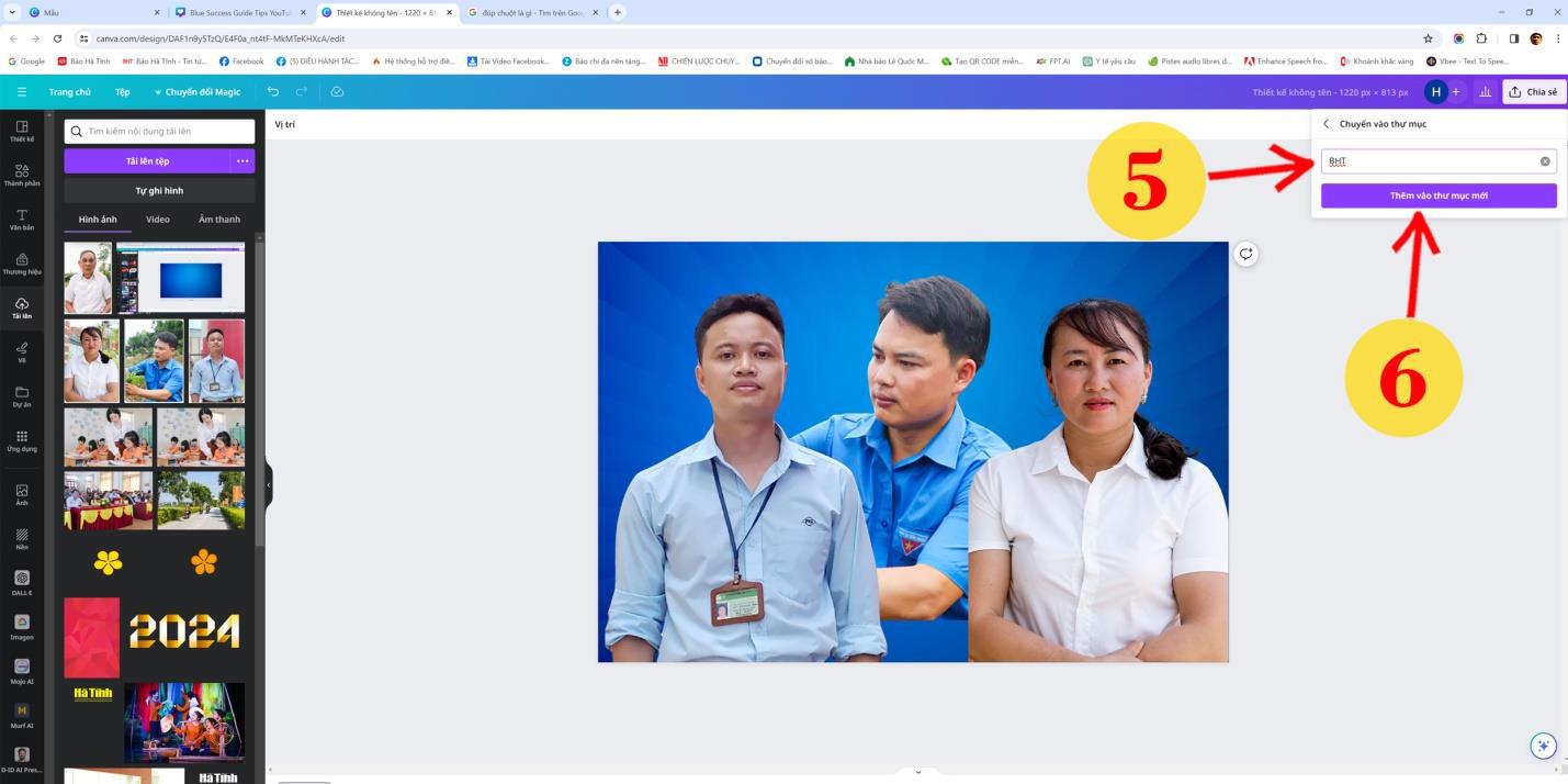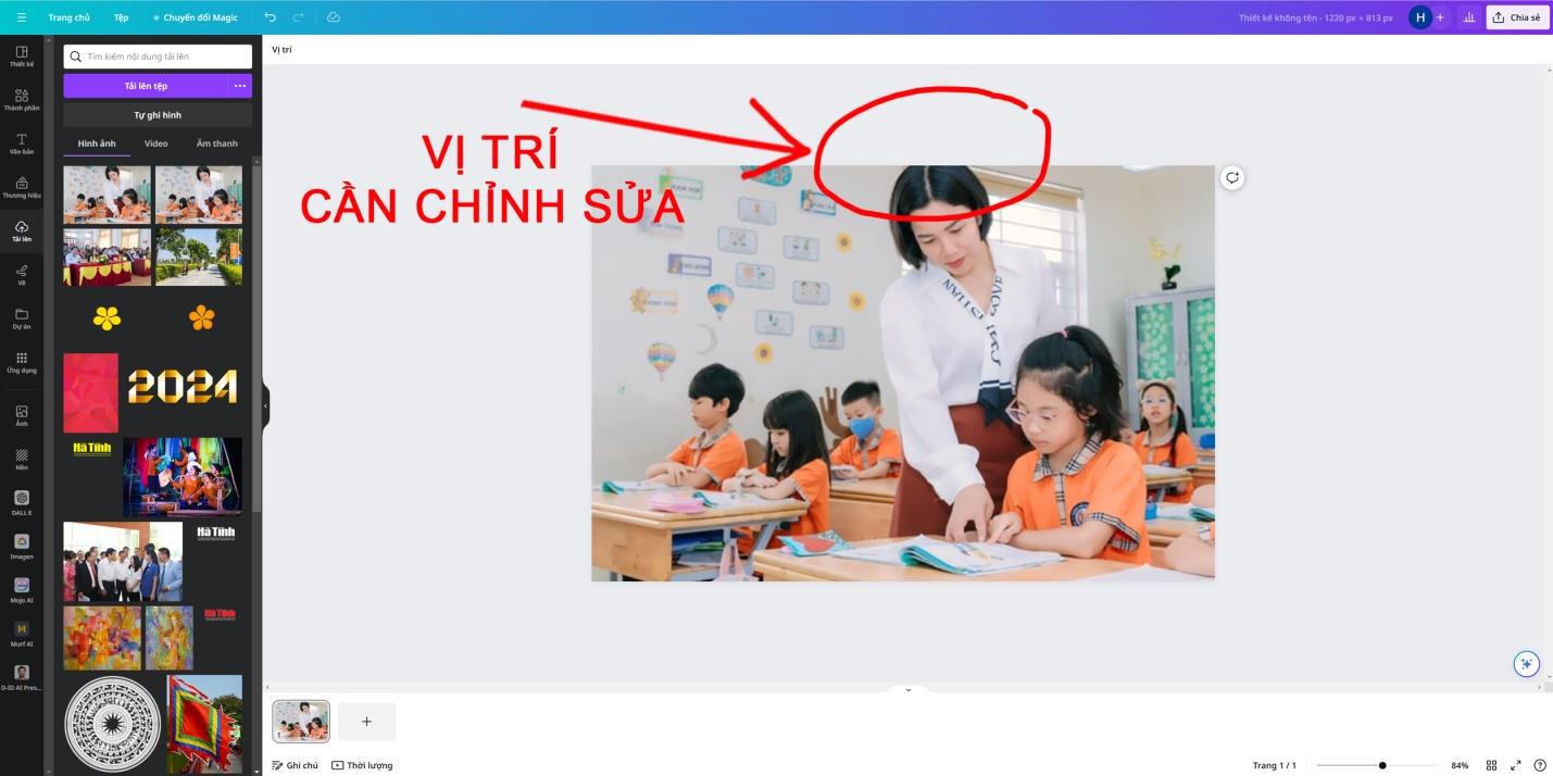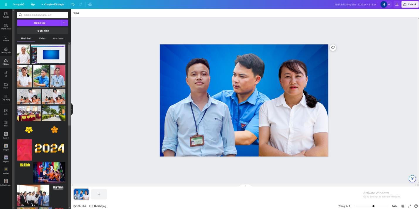 - Bước 5: Click chuột vào ảnh đã được tải lên hoặc giữ chuột để kéo ảnh vào khung.