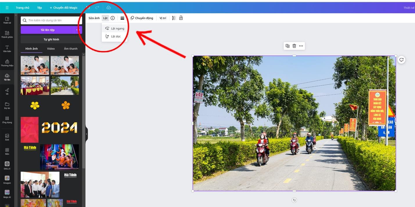 - Click vào ảnh => chọn “Lật” và “Lật ngang, “Lật dọc” theo hướng cần lật