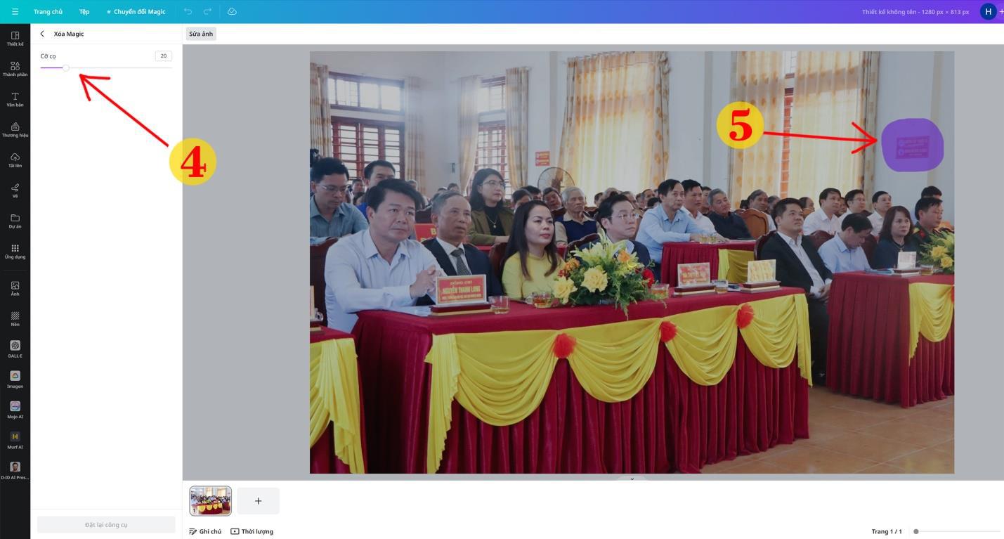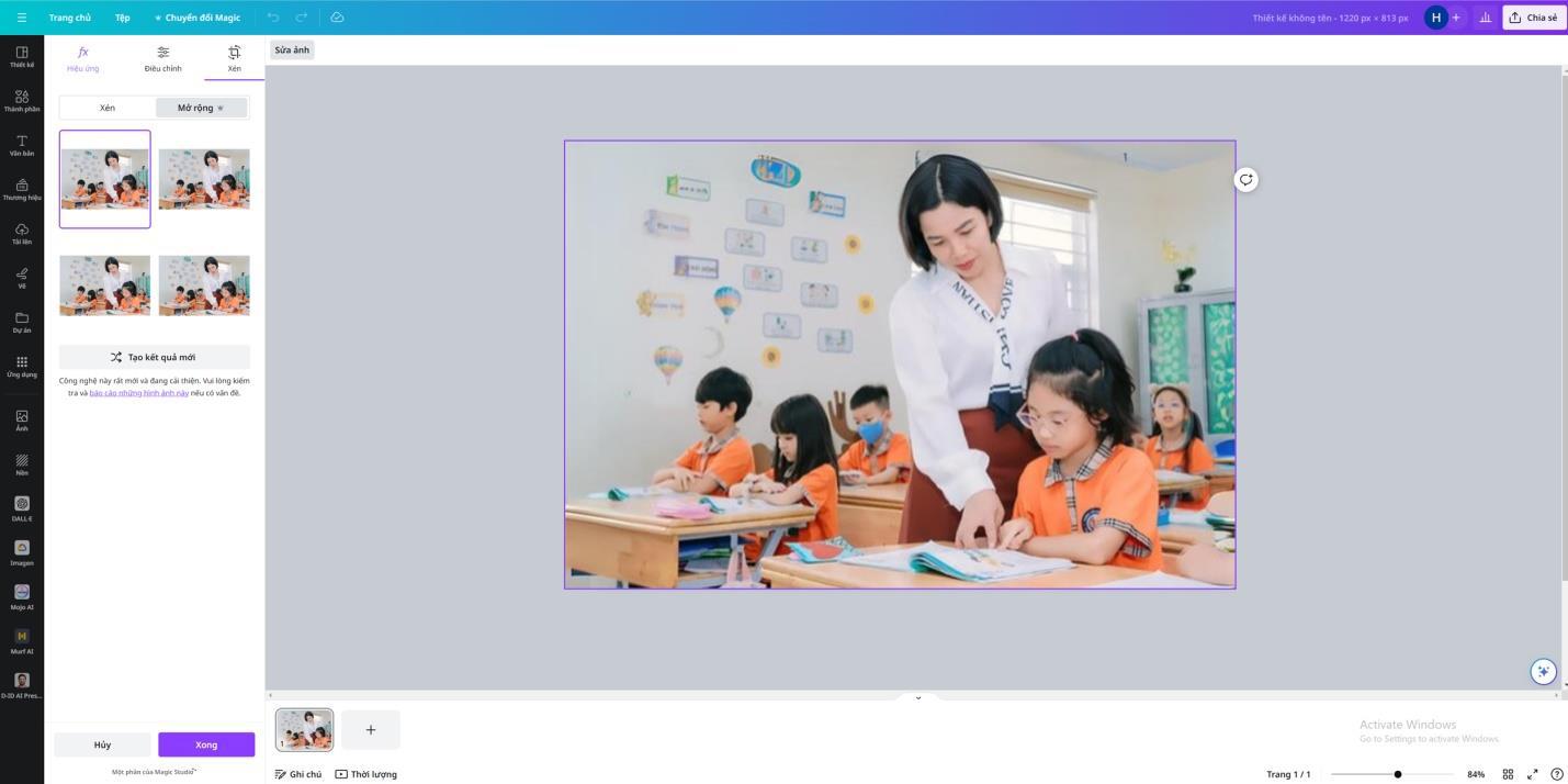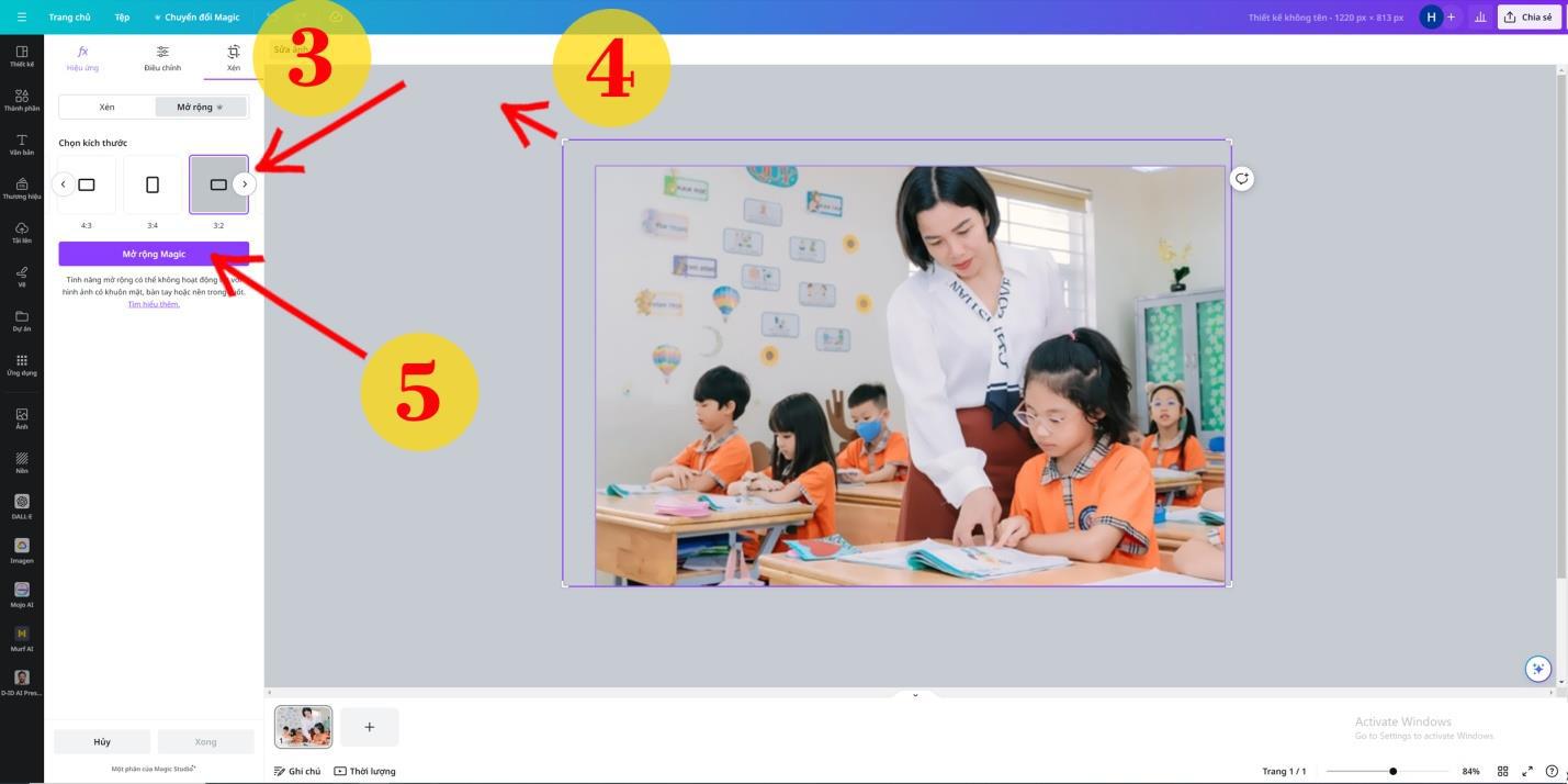 - Bước 4: Giữ chuột ở góc ảnh để keo, mở rộng phần ảnh bị cắt