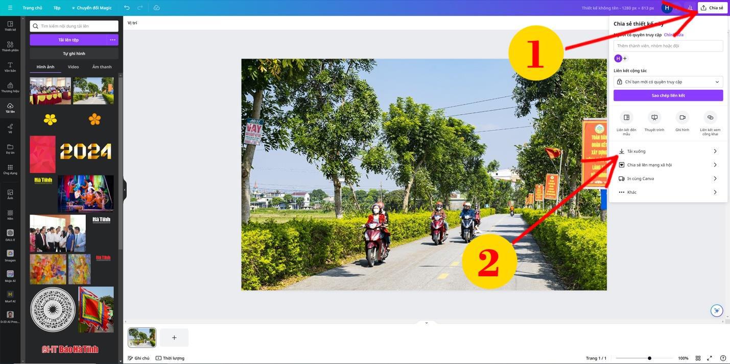 - Bước 1: Lưu ảnh: Click vào: “Chia sẻ”